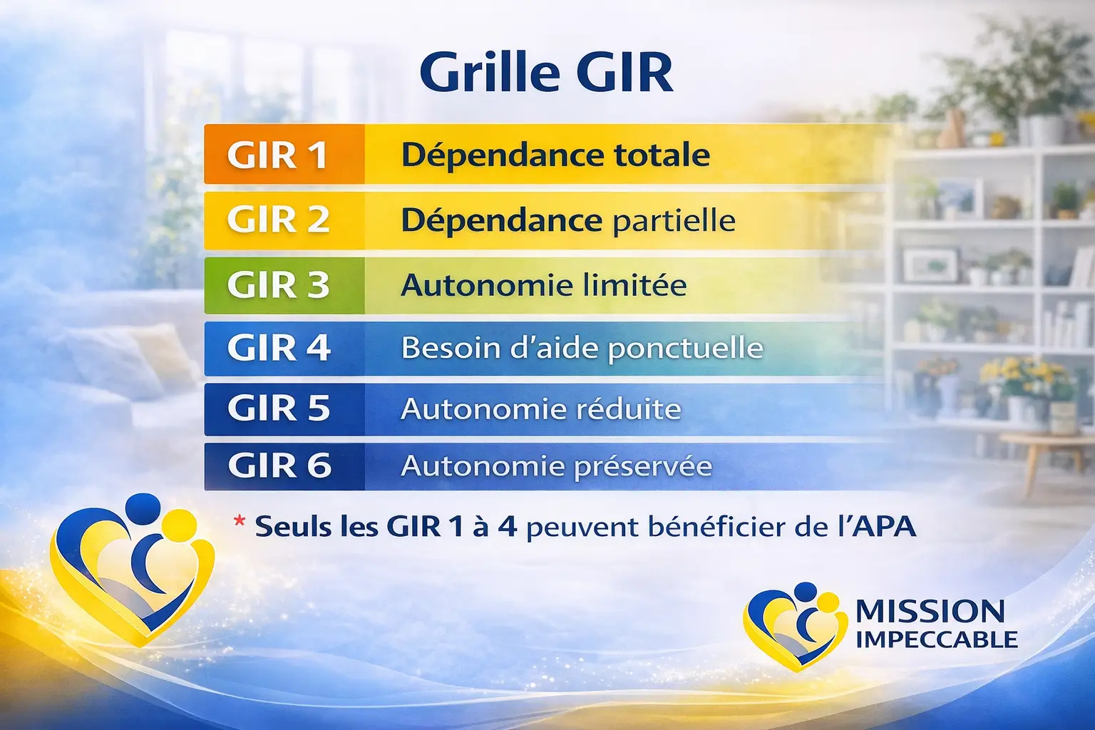 Le niveau de dépendance est évalué selon la grille GIR (Groupe Iso-Ressources).