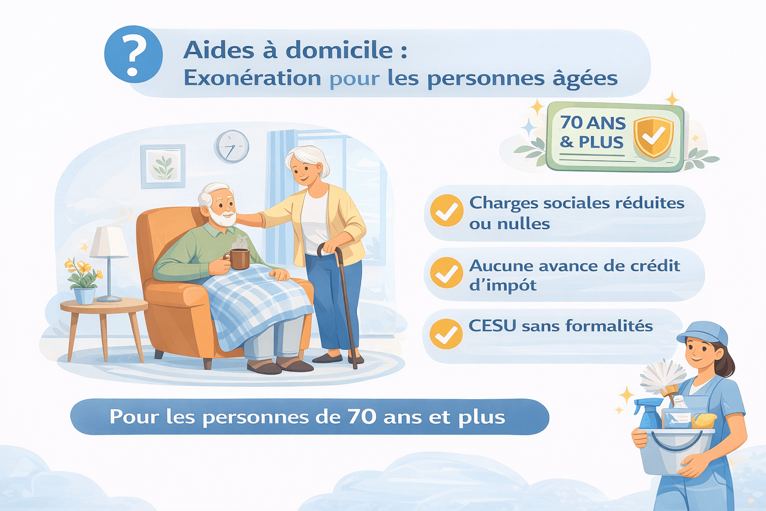 Dans certains cas, les personnes âgées peuvent bénéficier d’une exonération des cotisations patronales lorsqu’elles emploient une aide à domicile via le CESU.